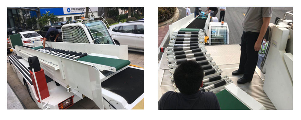 产品特点:视野开阔、升降范围宽、动力强劲、操作和维护方便,可满足所有飞机机型的使用要求。加装柔性传送装置,可将货物行李的直线传送调整为任意方向的弯曲路径传送,可直接将货物传送抵达到机舱内的任意角落。设有装卸装置的传送装置:通过对装卸装置配备伸缩机构与升降机构,可提高行李加载点与卸货点的对位精准度。